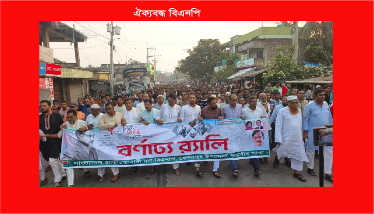 কেশবপুর উপজেলা ও পৌর বিএনপির উদ্যোগে শহরের থানা মোড় বিএনপির কার্যালয় থেকে র্যালি অনুষ্ঠিত হয় । বাজারের প্রধান প্রধান সড়ক প্রদক্ষিণ করে।