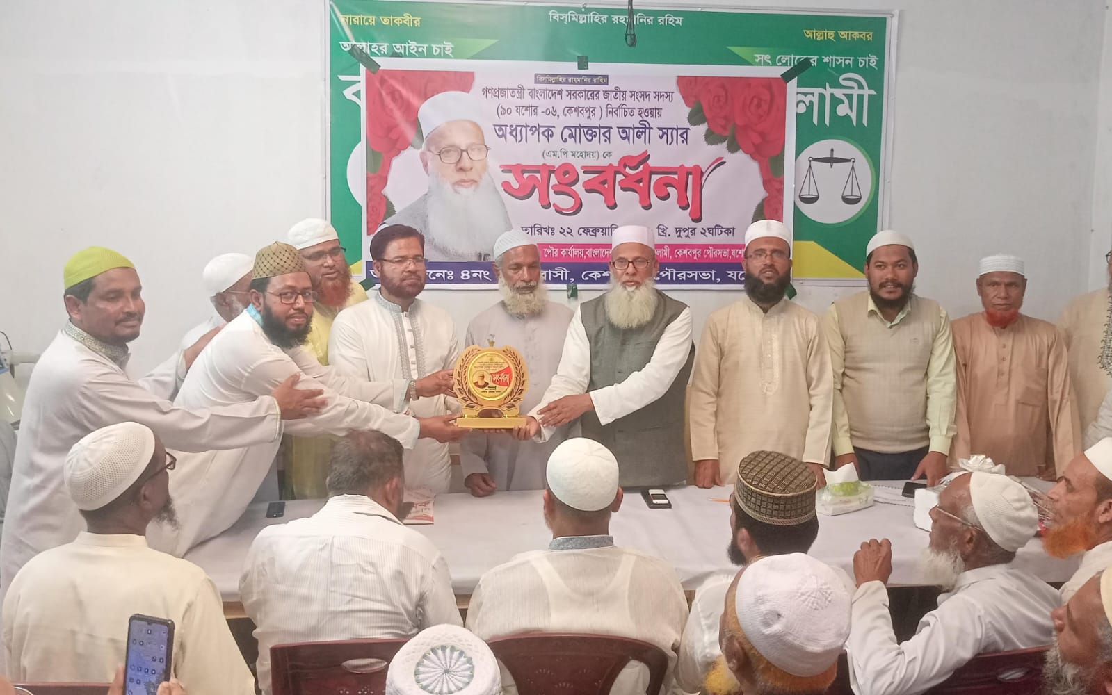 কেশবপুরে এমপি অধ্যাপক মোক্তার আলীকে সংবর্ধনা