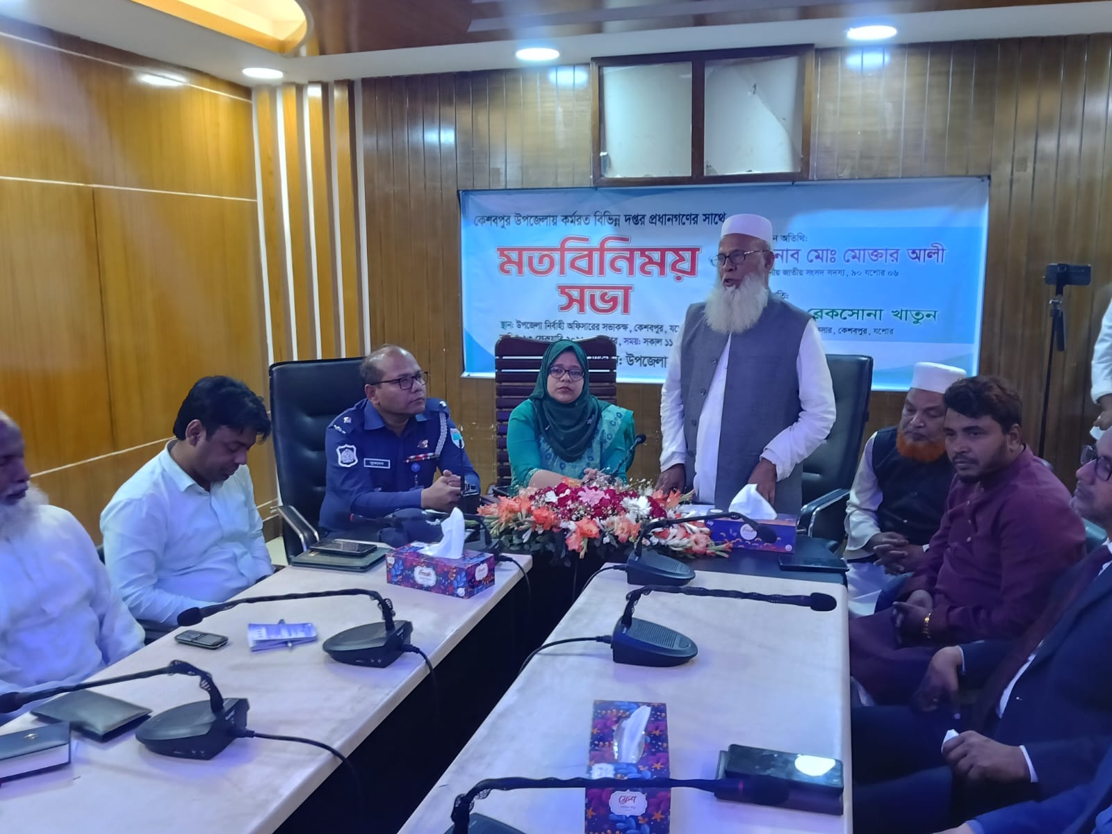 উপজেলা নির্বাহী কর্মকর্তা রেকসোনা খাতুনের সভাপতিত্বে মতবিনিময় সভায় প্রধান অতিথির বক্তব্য দেন সংসদ সদস্য মোক্তার আলী। অন্যান্যের মধ্যে বক্তব্য দেন, কেশবপুর থানার ভারপ্রাপ্ত কর্মকর্তা (ওসি) সুকদেব রায়, উপজেলা স্বাস্থ্য ও পরিবার পরিকল্পনা কর্মকর্তা ডা. রেহেনেওয়াজ , উপজেলা কৃষি কর্মকর্তা আব্দুলাহ আল মামুন, উপজেলা সিনিয়র মৎস্য কর্মকর্তা সুদীপ বিশ্বাস, উপজেলা প্রাণিসম্পদ কর্মকর্তা ডা. অলোকেশ কুমার সরকার, উপজেলা শিক্ষা কর্মকর্তা শেখ ফিরোজ আহমেদ, উপজেলা মহিলা বিষয়ক কর্মকর্তা রূপালী রানী, উপজেলা যুব কর্মকর্তা আনজু মনোয়ারা, উপজেলা সমবায় অফিসার নাসিমা খাতুন, উপজেলা নির্বাচন কর্মকর্তা কাজী মাহামুদ হোসেন, সমাজসেবা বিষয়ক কর্মকর্তা রোকনুজ্জামান প্রমুখ।